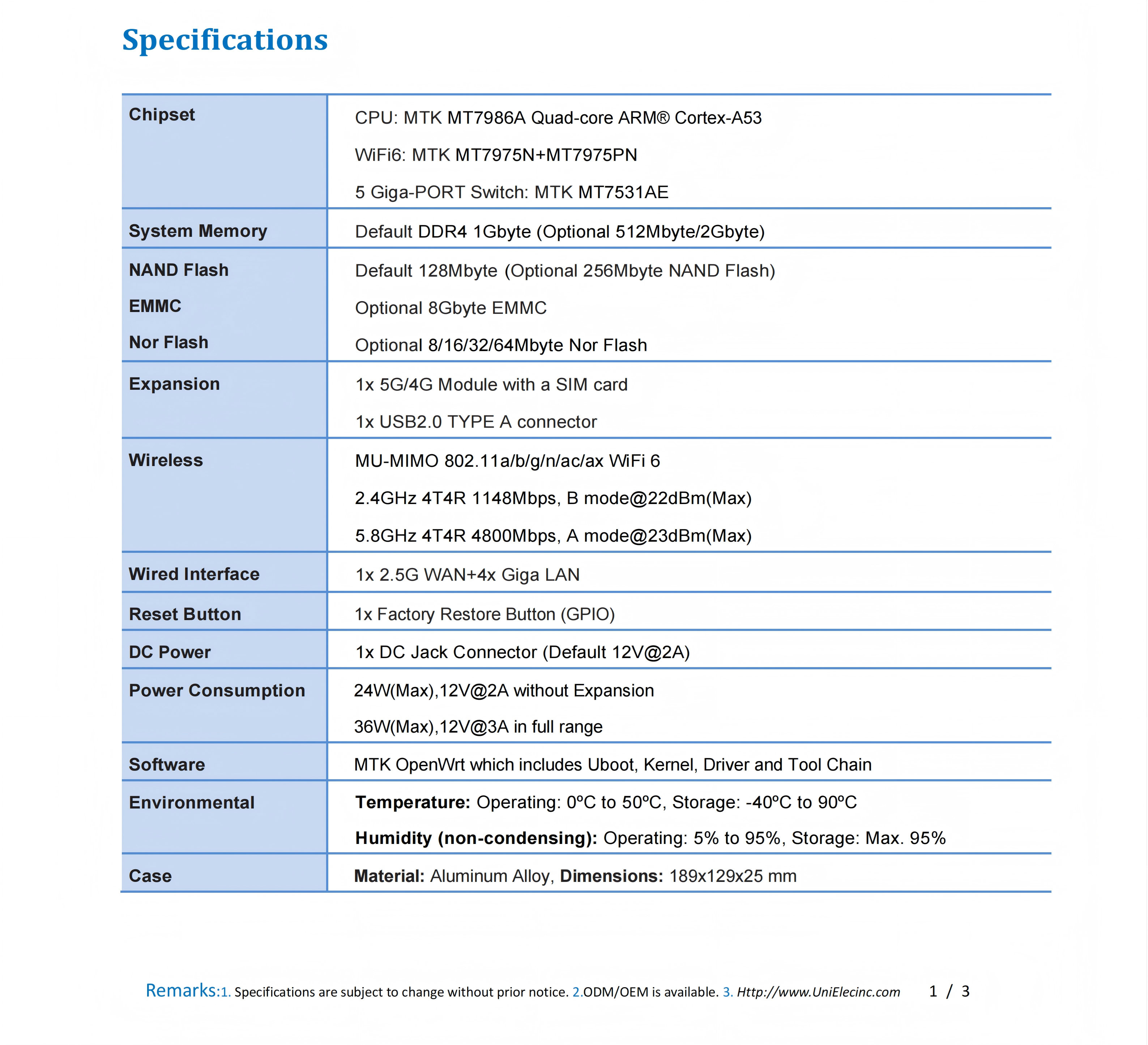 MTK MT7986 Router Development Sample: Gigabit Port WiFi 6 5G/4G Wireless AX6000 OpenWrt